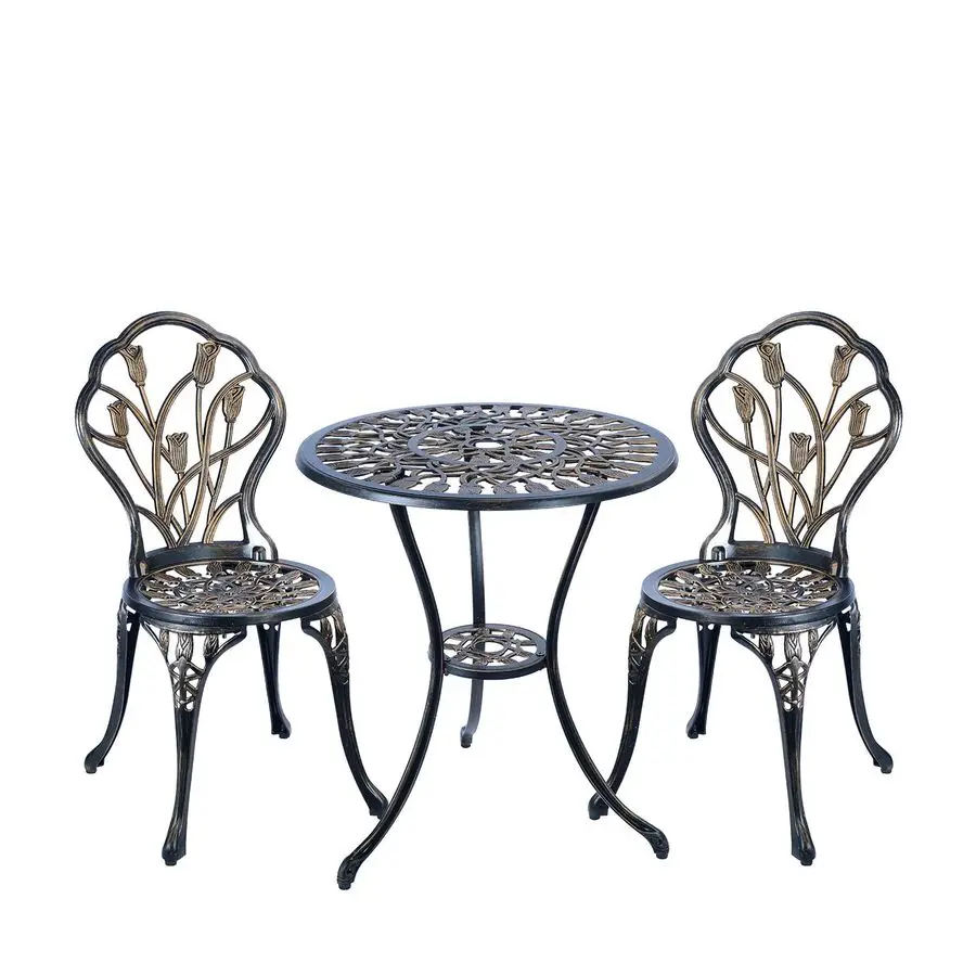 CAST ALUMINUM Using high density pure aluminum diecasting, to ensure the strength of the table and chair, no cracking, no deformation, no rust, smooth lines, beautiful appearance.